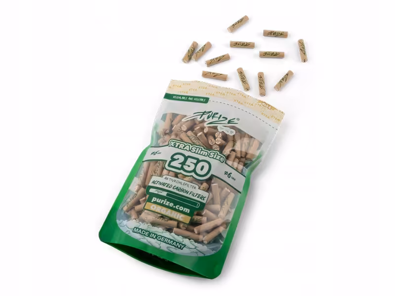 PURIZE Organic, 250 sztuk XTRA Slim Size (ø 6 mm); filtr z węglem aktywnym